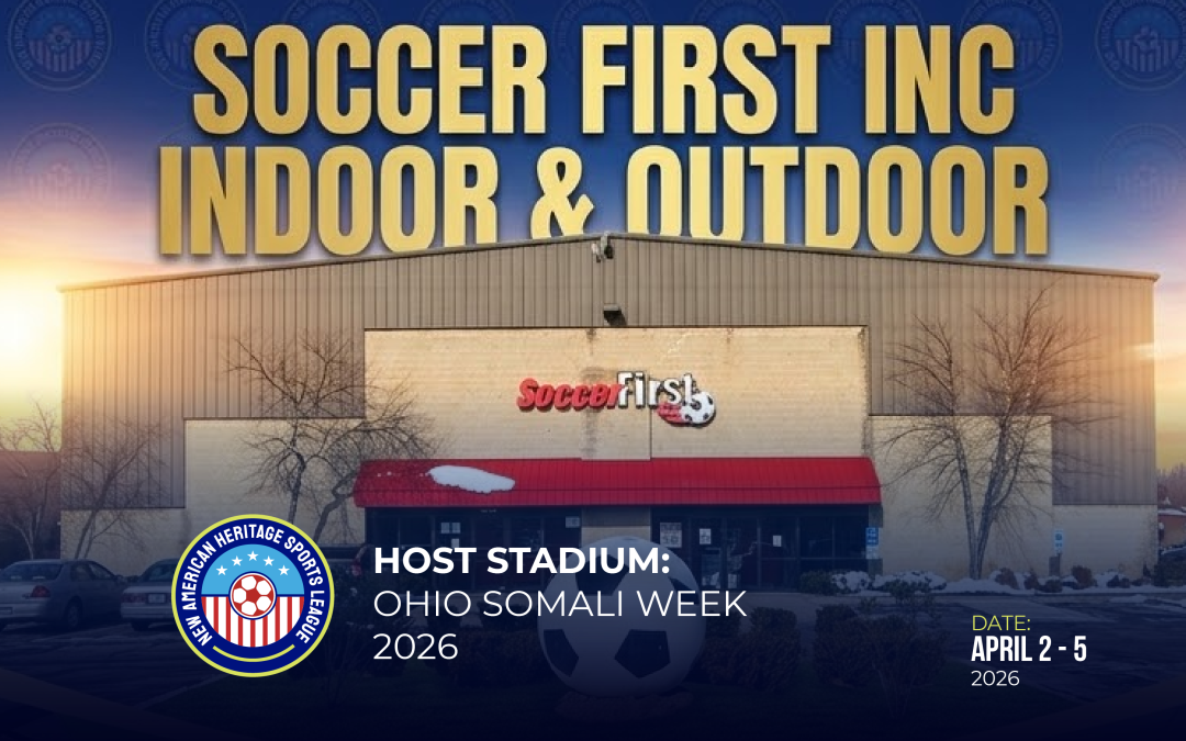 DUBLIN, OH — The New American Heritage Sports League (NAHSL) is proud to announce that the highly anticipated Ohio Somali Week 2026 will be hosted at the premier Soccer First Inc. complex in Dublin, Ohio. From April 2nd to April 5th, this world-class facility will serve as the battleground for 30 elite teams competing in both Youth and Odayaasha Veteran divisions.